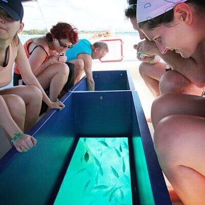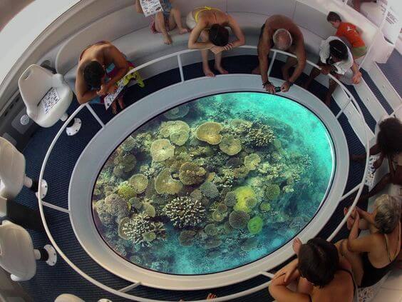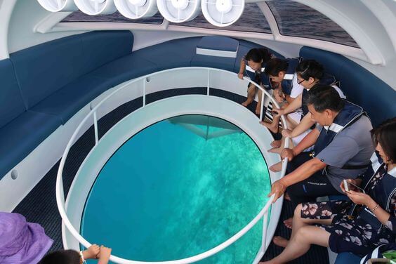 Glass bottom boats are typically catamarans or semi-rigids boats, offering a unique way to explore the amazing underwater world by viewing it from the bottom of the boat.